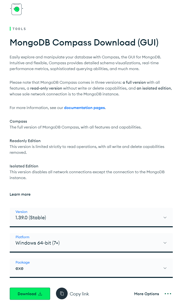 Free download for MongoDB tools to do more with your database. MongoDB Shell, Compass, CLI for Cloud, BI Connector and other database tools available.