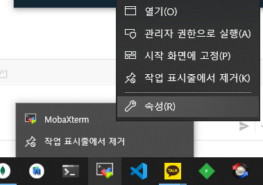 작업 표시줄에 있는 터미널 속성 들어가 준 다음에 고급에 관리자권한 실행 체크