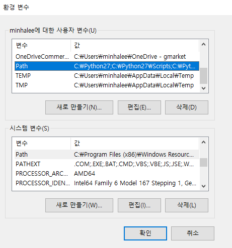 사용자 변수던 시스템 변수던 Path 변수를 선택해 편집을 눌러준다.