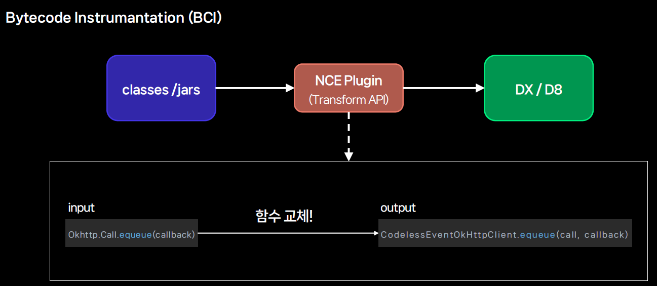 프로그램이 실행될 때 바이트코드에 추가적인 코드를 삽입하여 프로그램의 동작을 분석하거나 수정하는 것을 의미 (Scavanger의 원리)