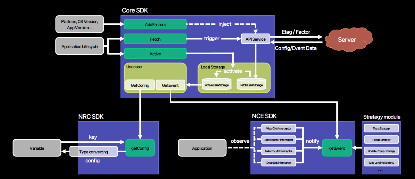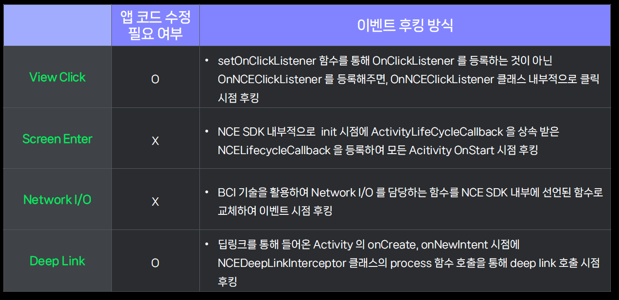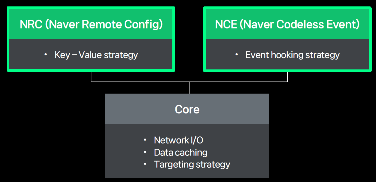 | Core SDK | NRC(Naver Remote Config) | NCE(Naver Codeless Event) |