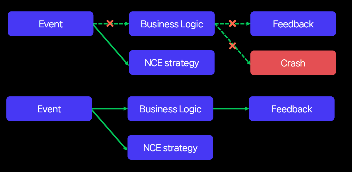 Firebase remote config에서 제공하는 NRC SDK라는 솔루션의 개선버전. 미리 앱에 코드를 심어줘야하는 NRC와 달리 네이버의 NCE는 미리 코드를 심어줄 필요가 없다.