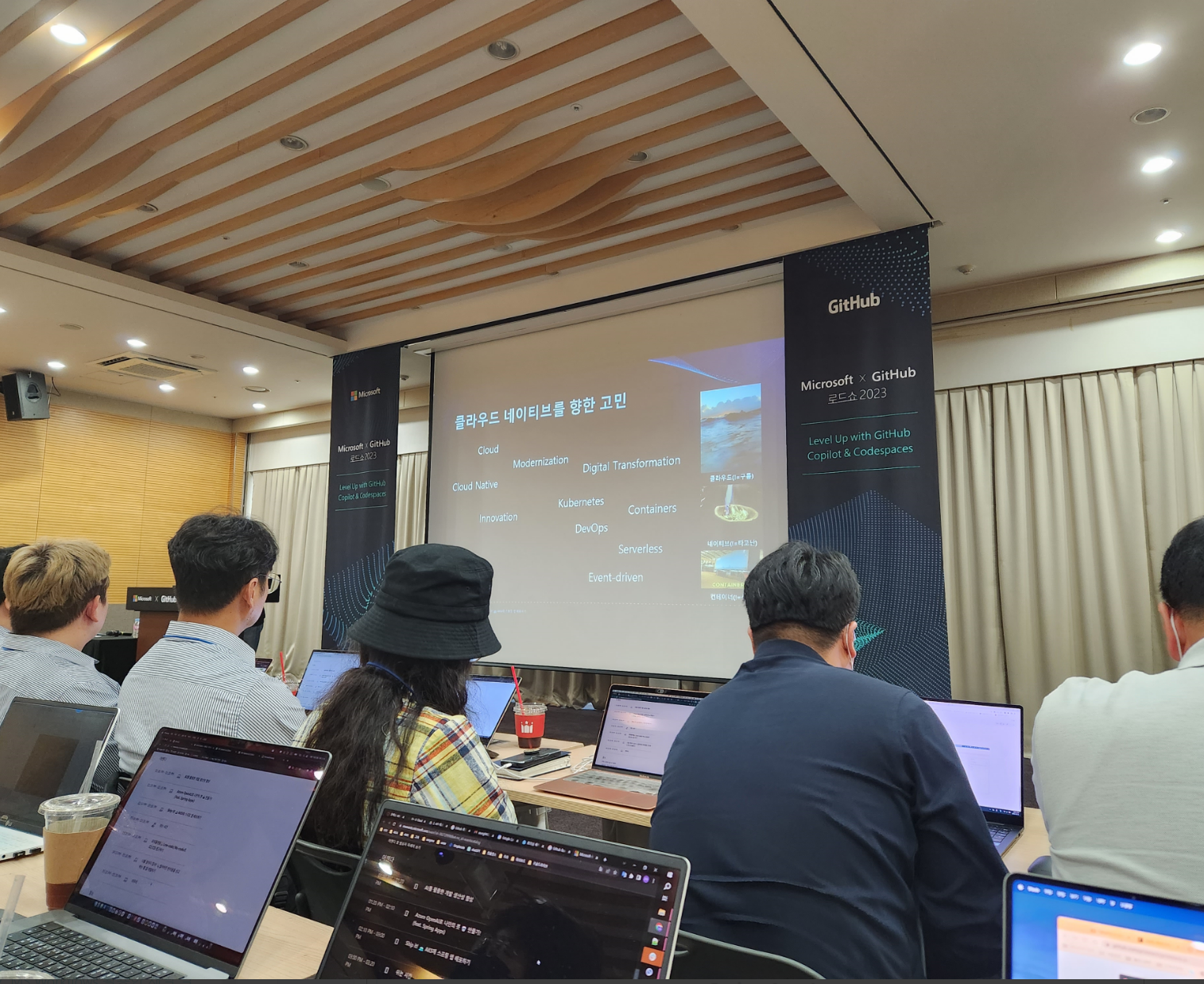Microsoft는 Azure를, GitHub은 Codespaces와 Copilot을 홍보하는 자리.