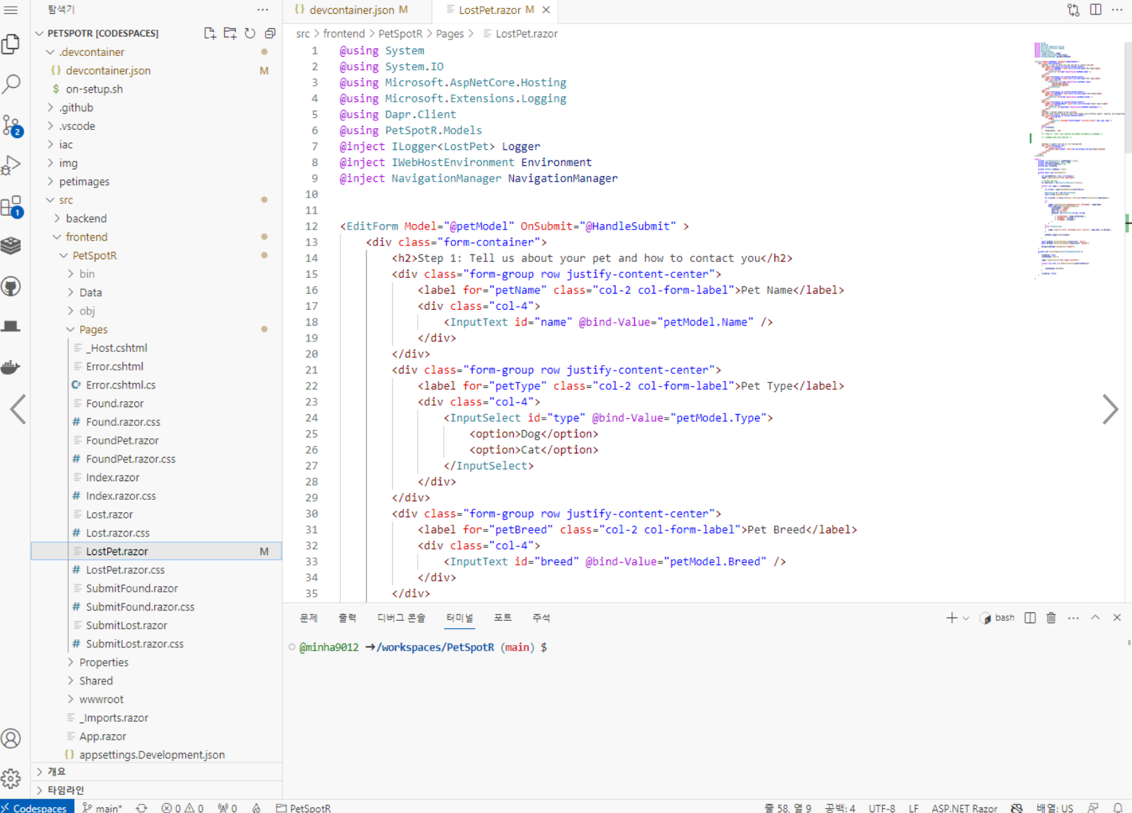 Codespaces 데모 레포 : https://github.com/gh-productivity-workshops/PetSpotR