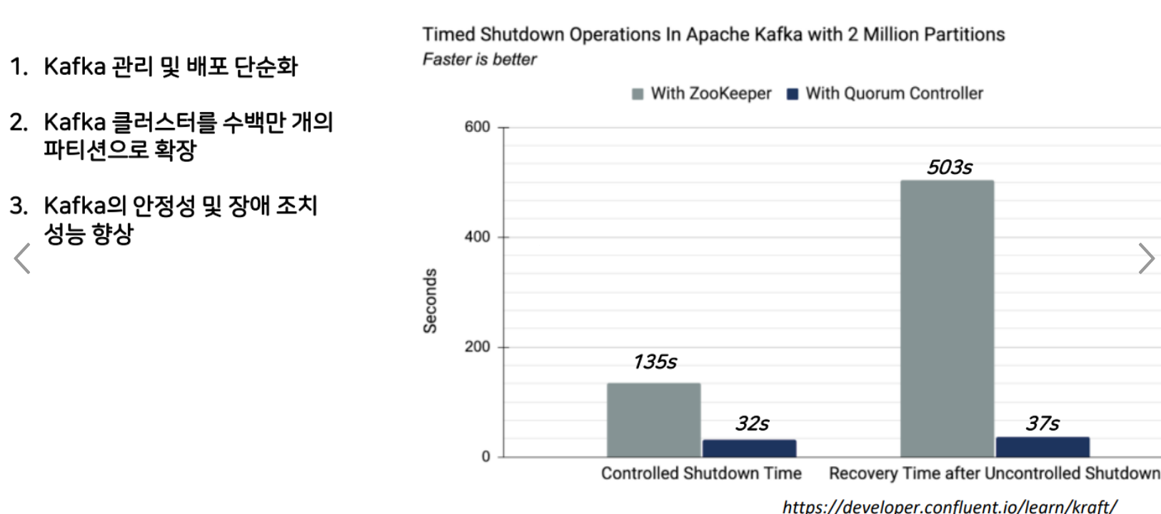 free license말고 사내에선 confluent kafka를 쓰니까 commercial license까지 가능할듯? (어차피 제네럴 한 것들은 다 free임) - KRaft 통해 더 이상 Zookeper를 사용안해도 될 듯? 이중관리를 안해도 되고 (사실 우리가 하는건 하니고 담당팀에서 하시겠지만...)