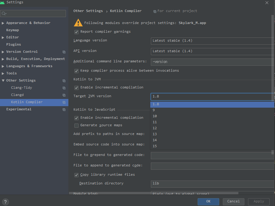 jvmTarget = "1.8"