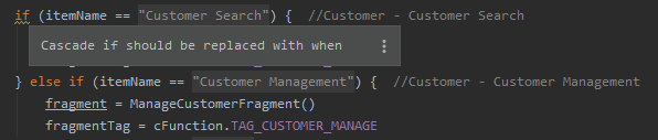 } else if (itemName == getString(R.string.customer_management)) { //Customer - Customer Management