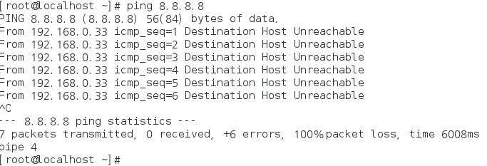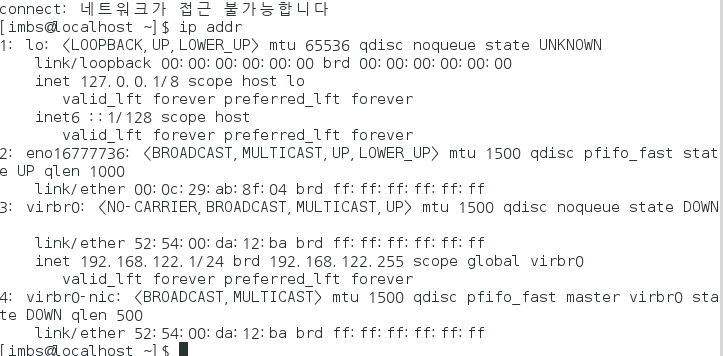 최초에 ping 8.8.8.8 을 쳐보면 네트워크가 접근 불가능이라고 나온다.