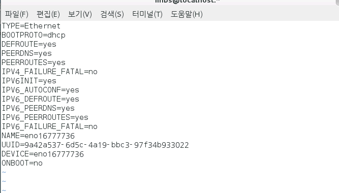 ONBOOT는 부팅 시 자동으로 랜카드 환경설정을 적용하기 위해 yes로 바꿔준다.