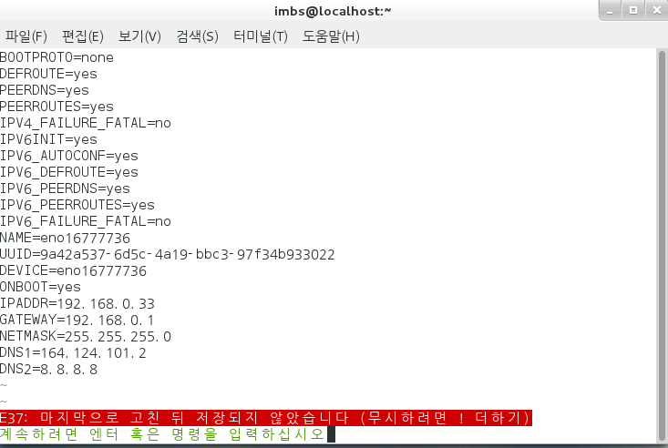 우리는 고정 ip를 사용할 것이기 때문에 BOOTPROTO 항목을 STATIC 혹은 NONE으로 바꿔주고