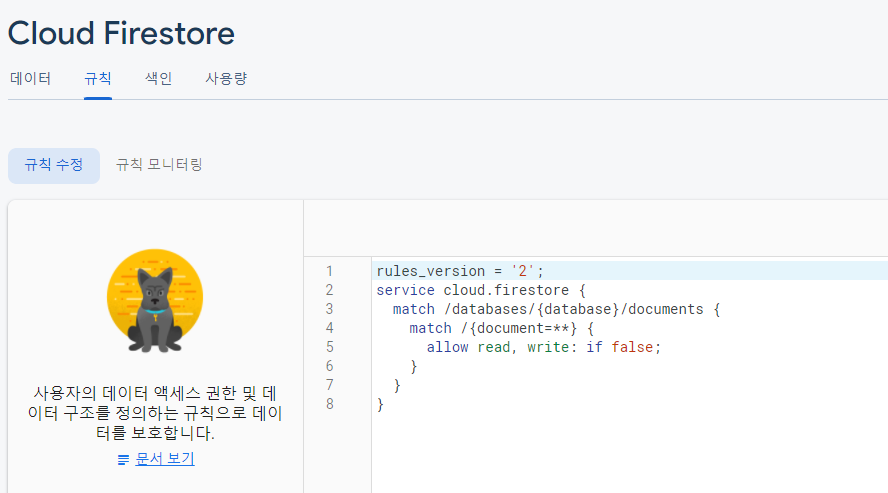 다음은 시작하는 데 사용할 수 있는 기본 규칙 세트입니다. Console의 규칙 탭에서 보안 규칙을 수정할 수 있습니다.