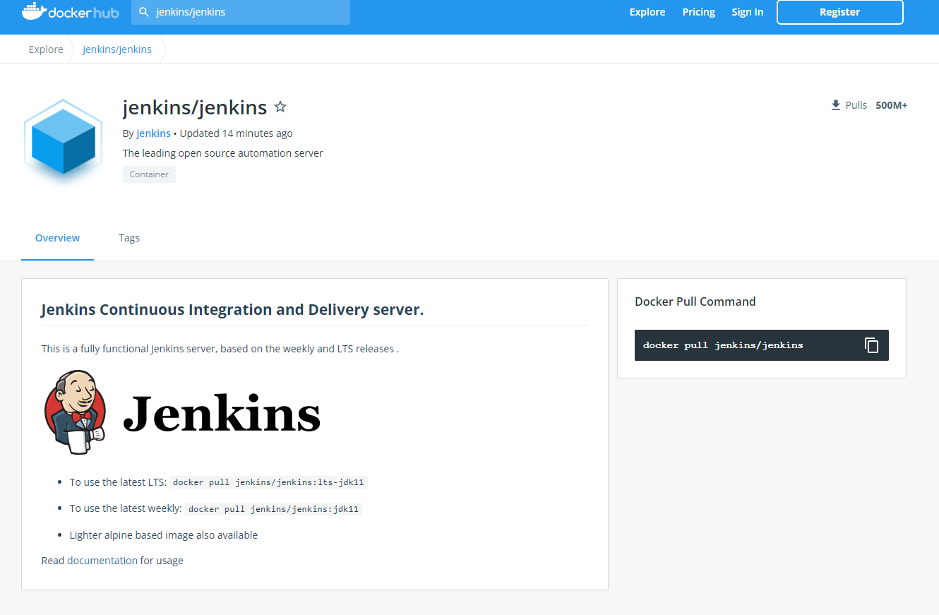 docker hub에 Jenkins 공식 이미지가 존재한다.