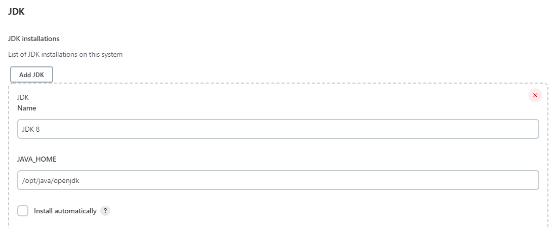 Install automatically 체크 버튼을 해제하여 JAVA_HOME을 수동으로 설정해 줄 수 있다.