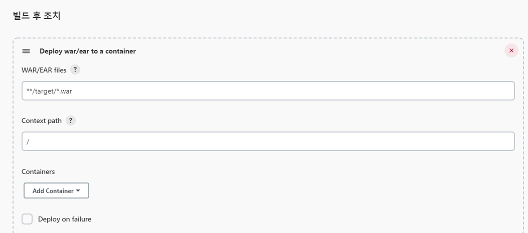 빌드가 되면 war파일을 컨테이너로 배포할 수 있도록 세팅해보자.