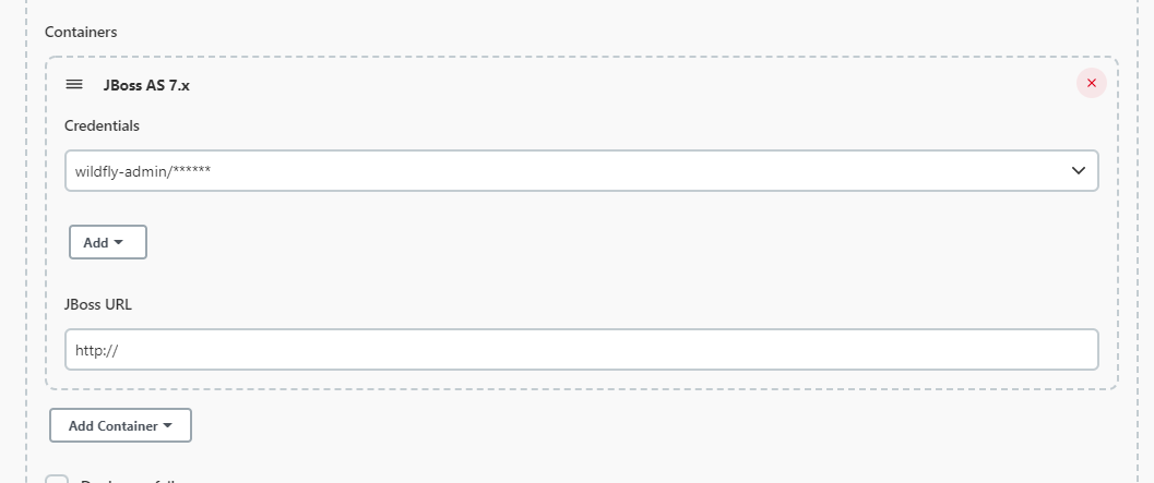 Add Container를 눌러 wildfly admin 계정 정보와 URL을 입력하도록 하자.